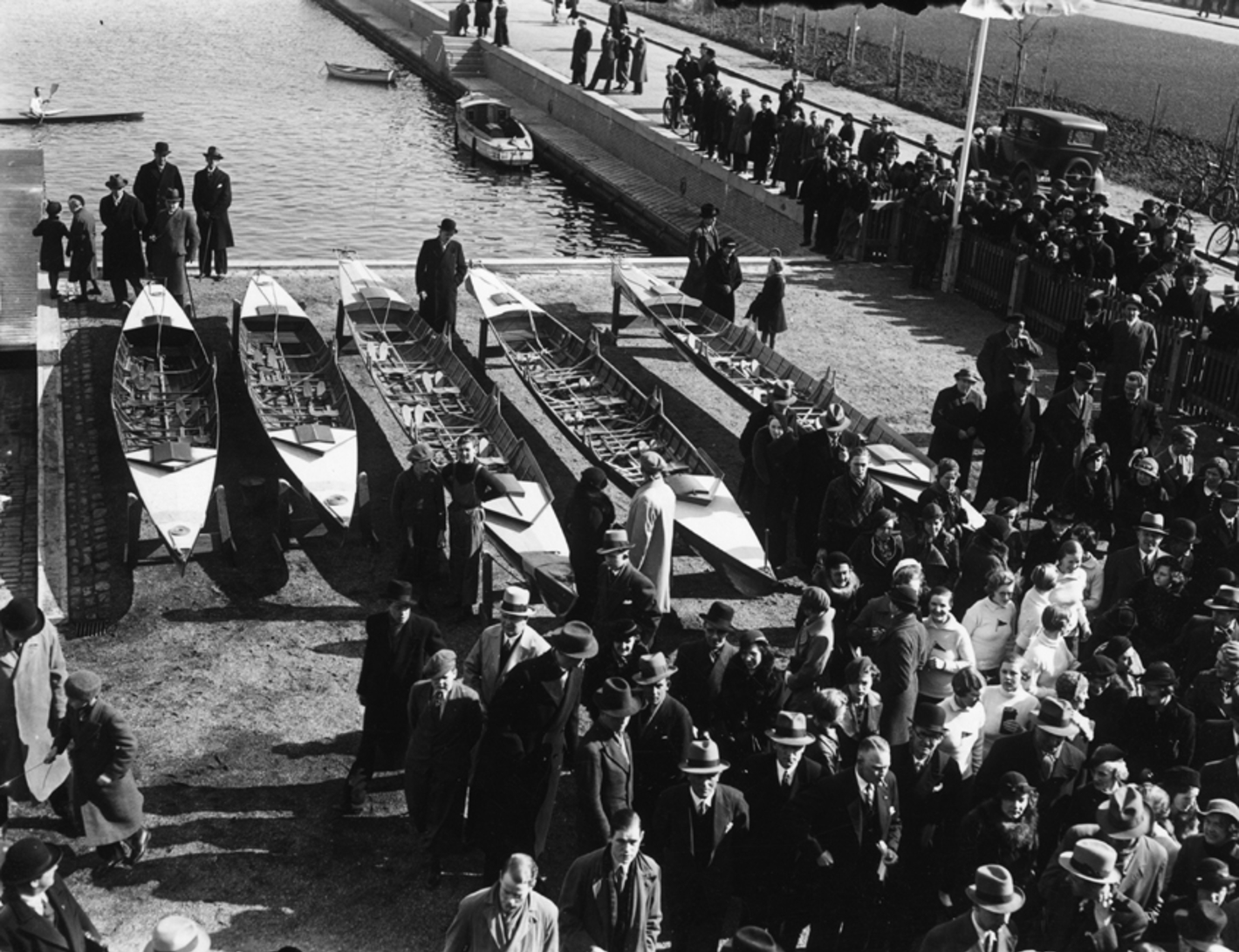 Standerhejsning og bådedåb i Aarhus Dameroklub og Aarhus Roklub. Fotograf Aage Fredslund Andersen, 1935, Den Gamle Bys billedsamling.