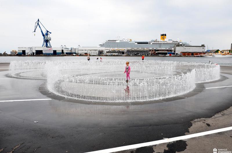 At Havnepladsen you will find the waterfountain Endless Connections. Jeppe Hein's (1974-) artwork can be admired both from within and from the outside. The large, unorthodox fountain is inspired by the pattern of the starry sky over Aarhus. The work was unveiled during Aarhus's year as European Capital of Culture in 2017 and has been located at the harbor ever since, to great amusement for dogs, children, and those young of heart.