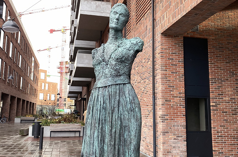 Den 2,2 meter høje bronzeskulptur af Nicoline Koch er lavet i 2022 af Liné Ringtved Thordarson (1965-). Skulpturen er placeret på Nicoline Kochs Plads 21 på Aarhus Ø ved bygningen Nicolinehus – alt sammen opkaldt efter den fremsynede og stærke skoleleder Nicoline Koch (1870-1932).