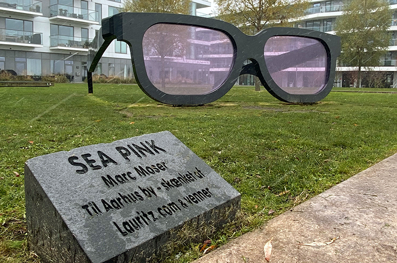 Marc Moser (1968-) står bag kunstværket Sea Pink, der oprindelig var en del af ARoS’ Sculpture by the Sea-udstilling i 2011, hvor værket blev offentliggjort ved Moesgaard. Sidenhen er værket blevet flyttet til Jette Tikjøbs Plads på Aarhus Ø, hvor det også står i dag. Tag et kig gennem brilleglasset og se Aarhus Bugt i et nyt lyserødt lys, som ved en uendelig solnedgang.