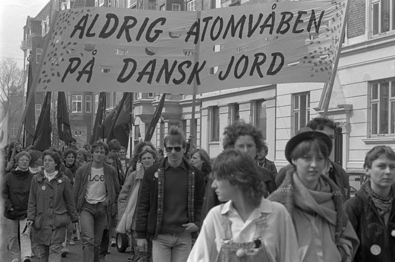 Med faren for en egentlig atomkrig opstod flere nye fredsbevægelser, som protesterede imod dansk støtte til flere atomvåben i NATO-alliancen. Allerede i 1960 blev Kampagnen mod Atomvåben stiftet, og fra samme år begyndte fredsmarcher at bevæge sig gennem landet i protest mod atomvåben. I 1979 stiftede kræfter i Aarhus Samarbejdsudvalget mod Atomoprustning, og i foråret 1980 blev organisationen Nej til Atomvåben – en dansk afdeling af det europæiske European Nuclear Disarmament – stiftet, og også denne havde rod i Aarhus. I 1982 kom også bevægelsen Krig og fred til verden med rod i den politiske venstrefløj.
