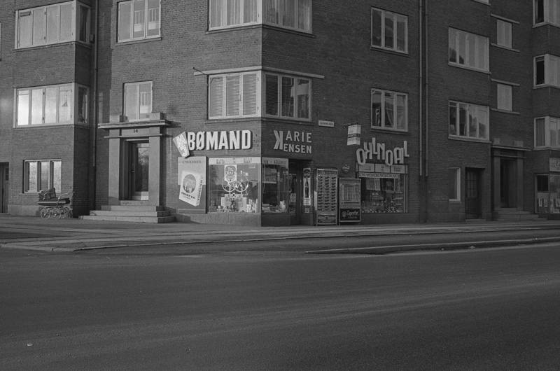 Øverste billede: På hjørnet af Jyllands Allé og P.P. Ørumsgade havde spasmagere været på spil ved den lokale købmand, der var blevet til ”Bømand Karie Jensen” i løbet af natten til 1965.