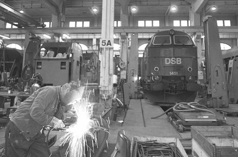 De mange ansatte på det store togværksted midt i Aarhus satte sit præg på byen gennem generationer. Foto: Jens Tønnesen, 1997, Aarhus Stadsarkiv.