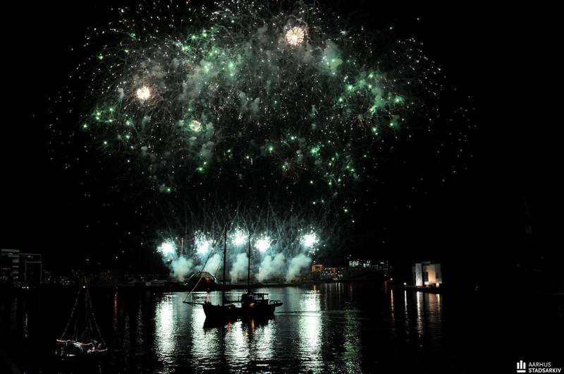 Øverste billede: 2017 var et travlt år for arkivets frivillige husfotograf, Ib Nicolajsen. Kulturhovedstadsåret bød på et væld af spændende arrangementer, og mange af dem blev dokumenteret af Ib Nicolajsen. Her er fyrværkeriet ud over bugten i forbindelse med det store åbningsshow blevet fanget i Ib Nicolajsens linse.