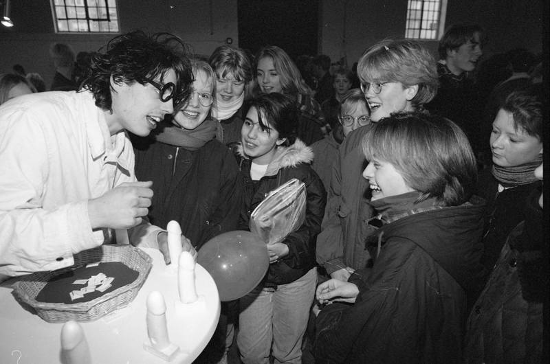 Billede: World AIDS Day i Ridehuset 1. december, 1993. Her var der både underholdning og undervisning. Fotograf Axel Schütt, 1993, Aarhus Stadsarkiv.