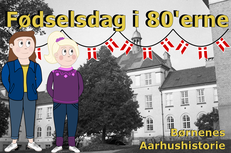 Billede: “Fødselsdag i 80’erne ” er en del af byvandringsprojektet “Børnenes Aarhushistorie”, der også byder på andre spændende ruter. De kan findes på appen Opdag Aarhus, der gratis kan downloades, hvor du normalt henter apps. Appen er udviklet af Aarhus Kommune, og indeholder stedsbeskrivelser og byvandringer med både lokalhistorie, kunst og kultur, musik, arkitektur, natur og meget andet for både børn og voksne.
