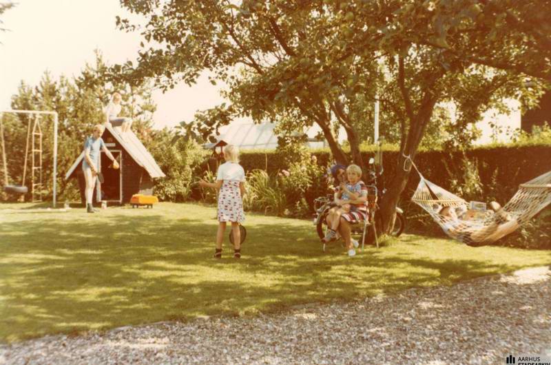 Billede: Kolonihaveidyl i 1970’erne i Haveforeningen Rugholm. Fotograf John Hansen, ca. 1976, Aarhus Stadsarkiv.