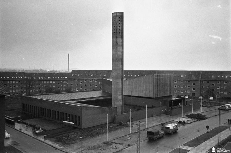 Billede: Langenæskirken på Langenæs Allé 61 ved året for indvielsen, 1966. Fotograf Jørn Timm, 1966, Aarhus Stadsarkiv.