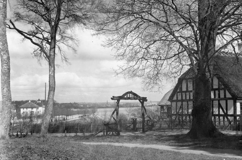 Billede: Det tidligere skovfogedhus ”Oldenhuset” på Havreballe Skovvej ser ud til at have flere hundrede år på bagen, men er her fotograferet helt nyopført i 1930’erne. Stadsingeniørens Kontor, ca. 1934, Aarhus Stadsarkiv