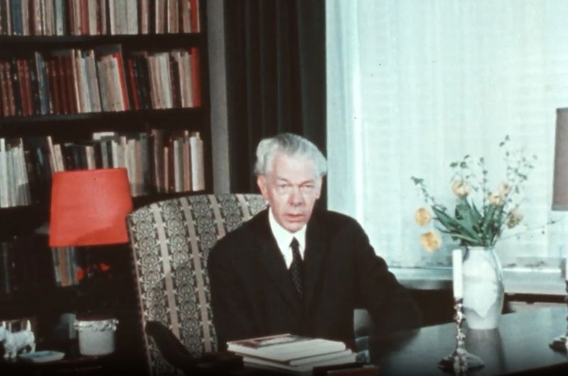 Billede: Fhv. borgmester Bernhardt Jensen i sit hjem på Marselisborg Allé 30B. Screenshot fra filmen. Filmen er produceret af Schiby Film med lyd fra Axel Zimmermann.