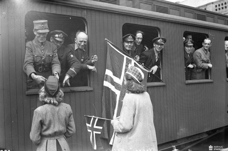 Den 2. juni trillede et særtog ind på Aarhus Hovedbanegård med 825 norske officerer. De blev modtaget af hundredvis af aarhusianere, der flagede med norske flag. De norske officerer havde siddet i koncentrationslejre i Tyskland, og hjemrejsen var egentlig blevet påbegyndt den 10. maj. Grundet rod i planlægningen gik der over 3 uger, før de atter havde nordisk jord under fødderne. I Aarhus blev de nu frie norske krigsfanger bespist med blandt andet skipperlabskovs og beslaglagt tysk rødvin i Aarhus-Hallen, inden de med skib næste morgen sejlede resten af turen mod hjemlandet.
