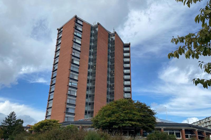 Billede: Ringgårdens højhus ved Charlottehøj, var Danmarks første højhus opført i mursten. Fotograf Kio Jørgensen Ng, 2024, Aarhus Stadsarkiv.
