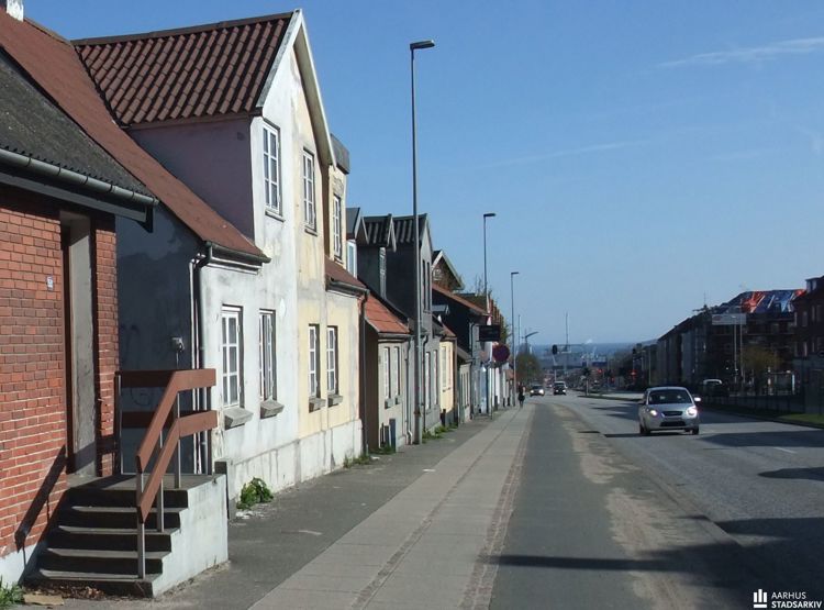 Billede: De nu nedrevne byhuse langs Randersvej. Fotograf Annette Damgaard, 2010, Aarhus Stadsarkiv.