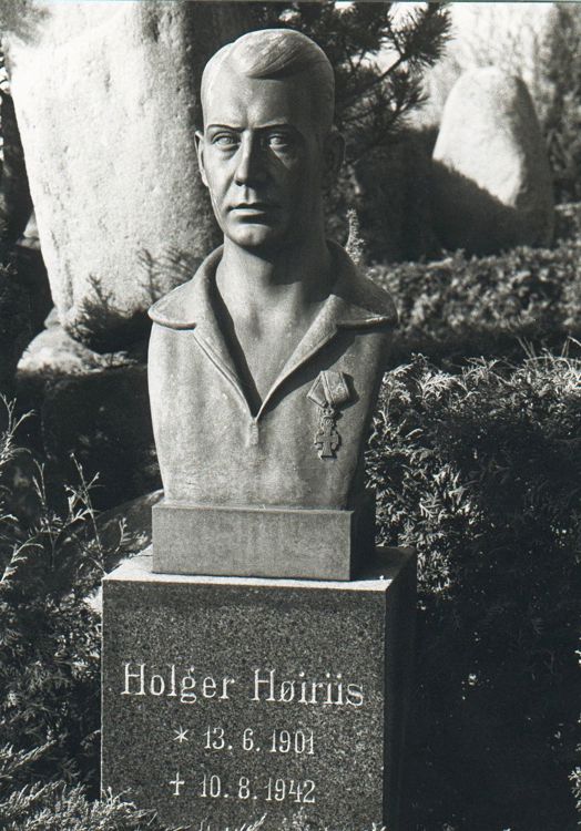 Billede: Buste af Holger Høiriis på Brabrand Kirkegård. Foto: Brabrand Årslev Lokalhistorisk arkiv