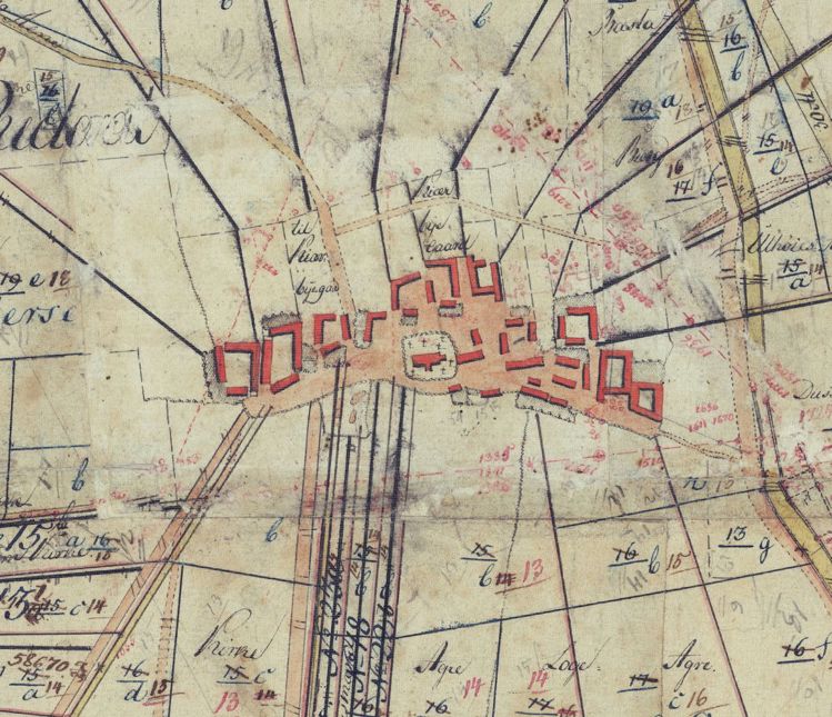 Billede: Udsnit af kort over Skejby. Opmålt 1779 af landmåler Rasmus Lemming. Kilde: Historiskekort.dk.