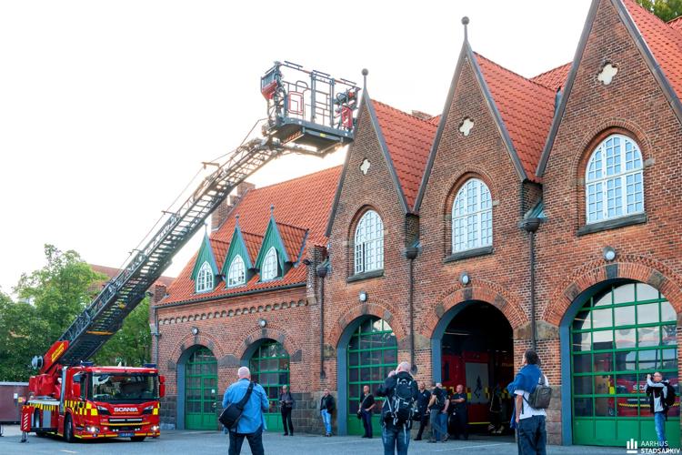 Billede: Rundvisning på Aarhus Brandstation på Ny Munkegade 15. Fotograf Ib Nicolajsen, 2023, Aarhus Stadsarkiv.