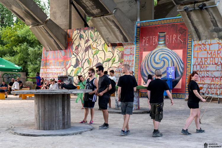 Billede: Musikeventet Bas Under Buen under Ringgadebroen. Arrangementet var gratis og blev arrangeret af OHOI!. På programmet var følgende: Rumpistol, Shatter Hands, Nilas, Hans Solo, 8KILO, Junglelyd, Noianiz, Aarhus Volume, Denali, Alex Index, RDG og OHOI! Fotograf Ib Nicolajsen, 2019, Aarhus Stadsarkiv.