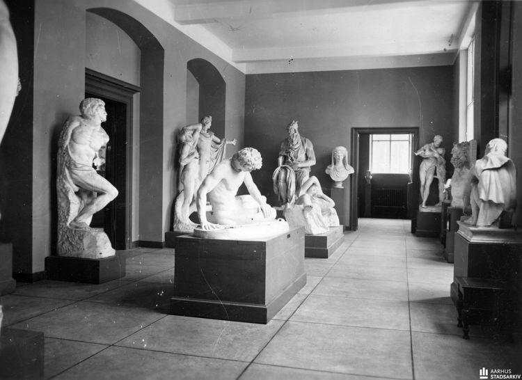 Billede: Gipsafstøbningssamlingen på Aarhus Museum. Samlingen findes i dag på Antikmuseet på Aarhus Universitet. Foto: Stadsarkitektens Kontor, ca. 1935, Aarhus Stadsarkiv.