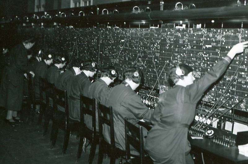 Øverste billede: Telefonister på Jydsk Telefon i 1934. Fotograf Aage Fredslund Andersen, Den Gamle By.