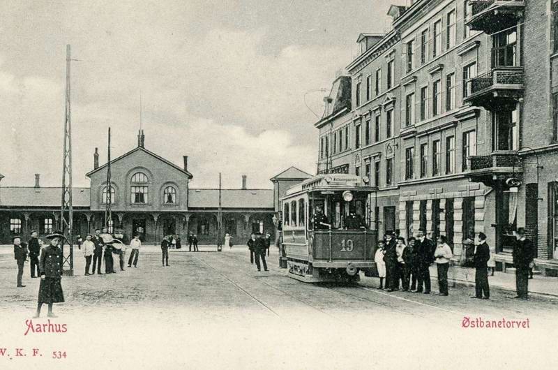 Øverste billede: Østbanetorvet fotograferet i 1904 med den nyetablerede sporvognslinje. Fotograf Thomas Sørensen Hermansen, Den Gamle By.