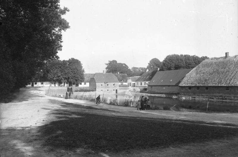Billede: Marselisborg mindede med sine mange lave bygninger mest om en lille landsby. Her er herregården fotograferet fra nordvest omkring år 1900. Fotograf Edvard Monsrud, Aarhus Stadsarkiv.