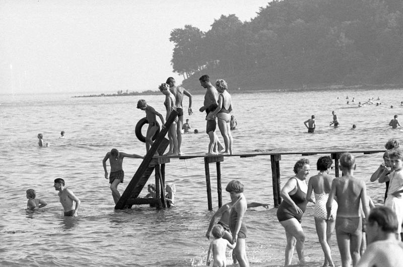 Billedet er taget af fotograf Jørn Timm en varm sommersøndag i 1963 ved Moesgaard Strand.