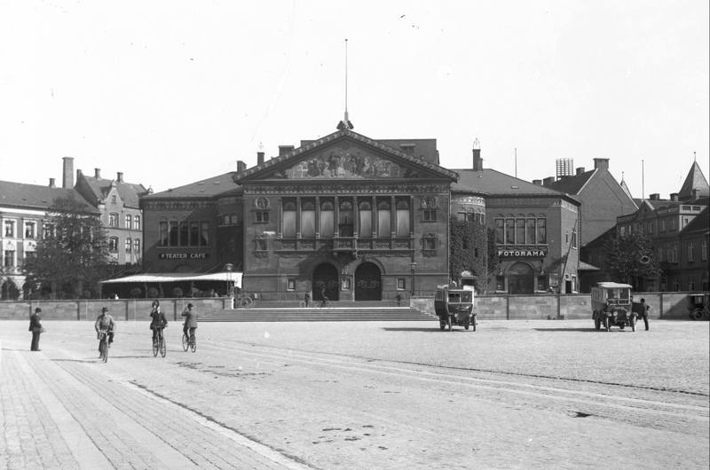 Billede: Aarhus Teater på Bispetorvet anno 1924 med Teater Café og biografen Fotorama. Hammerschmidt Foto, 1924, Aarhus Stadsarkiv.