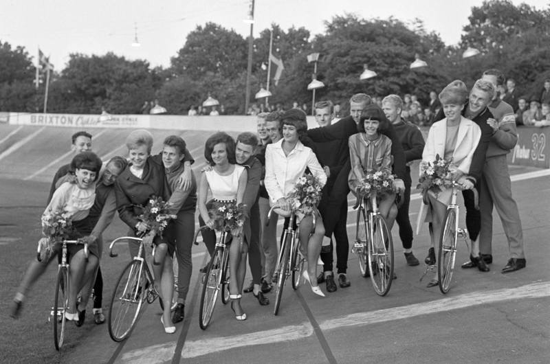Tre gamle aarhustraditioner blev i 1964 forenet, nemlig cykelbanen, Frøken Aarhus og Rundskuet. På cykelbanen blev årets Frøken Aarhuskandidater præsenteret til årets Rundskueløb. Aarhus har lange og stolte traditioner inden for banecyklingen, og på billedet ses blandt andre den dengang blot 17-årige Niels Fredborg (på cykel nr. 2 fra venstre) med Frøken Aarhus-kandidaten Jytte Bruun Dahl. Frk. Jytte blev senere på året kåret til Frøken Aarhus, og Fredborg blev en sand cykellegende med blandt andet en olympisk titel på CV’et.
