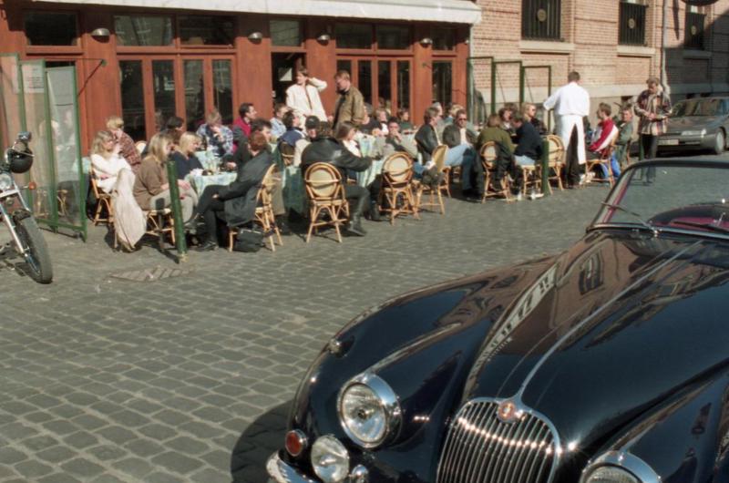 Billede: Forårsstemning ved Café Casablanca i Rosensgade. Fotograf Jens Tønnesen, 1996, Aarhus Stadsarkiv.